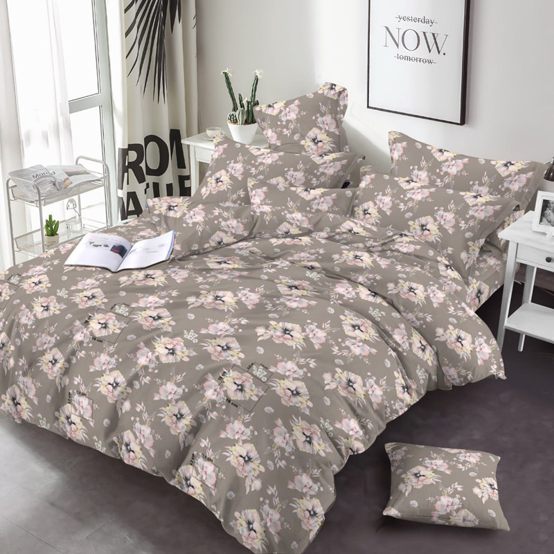 Темна бежева тканина 220 см для постільної білизни Фланель (байка) набивна 100% бавовняна з малюнком квіти, рулон 25 м
