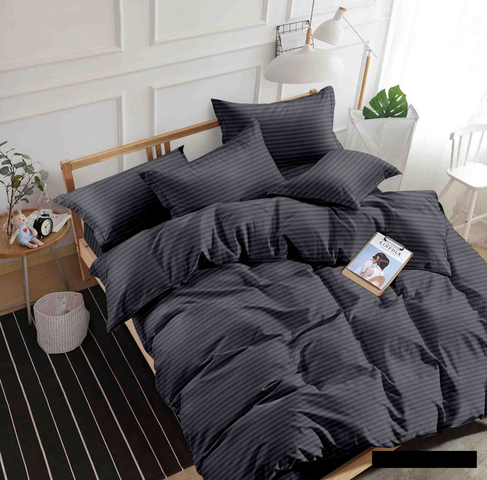 Чорна якісна бавовняна тканина страйп-сатин для пошиття готельної постільної білизни