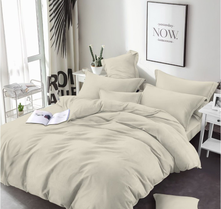 Стильна однотонна бавовняна тканина Бязь Голд Люкс Пакистан бежевого кольору для постільної білизни